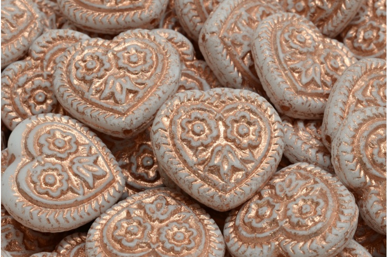 Heart Beads With Flowers 17x17mm