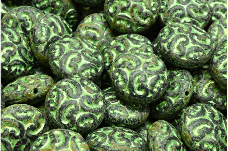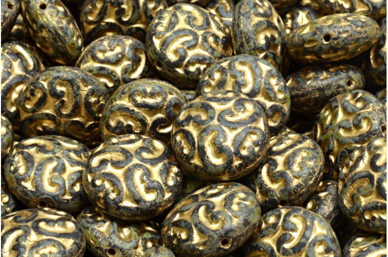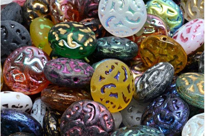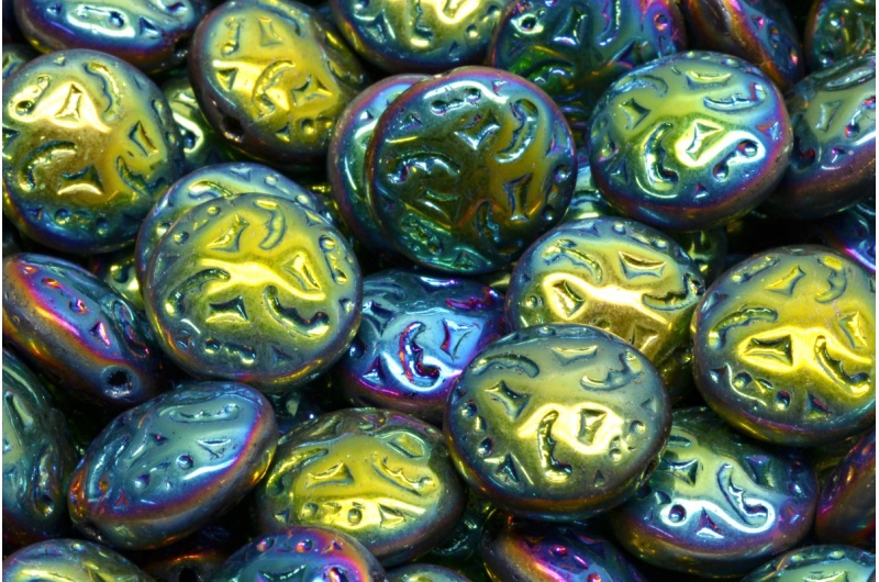 Lentil Beads with Ornaments 14mm