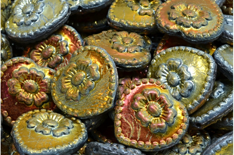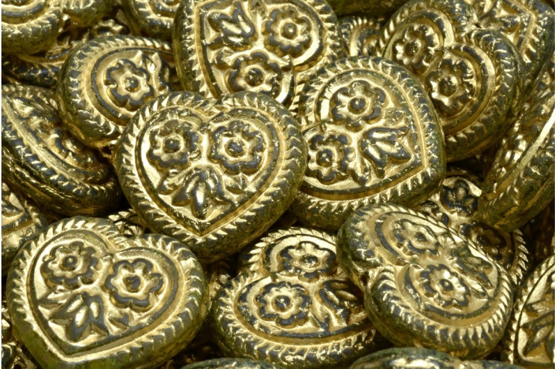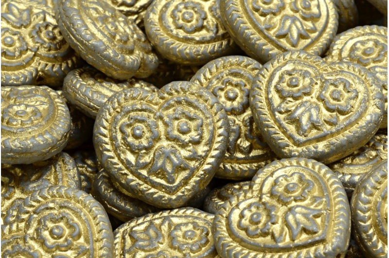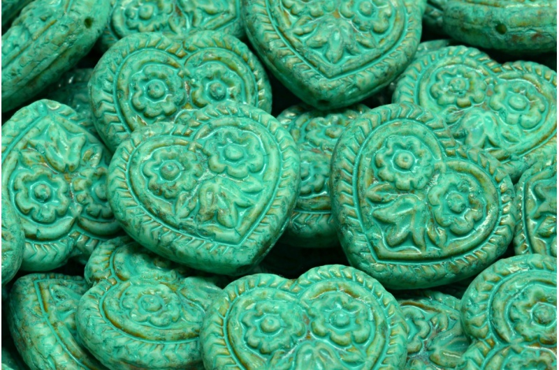 Heart Beads With Flowers 17x17mm