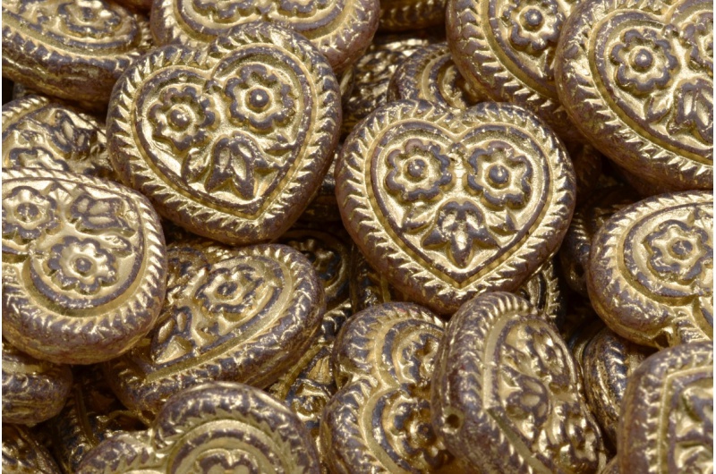 Heart Beads With Flowers 17x17mm